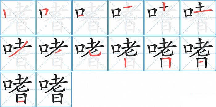 嗜是左右结构,嗜的部首是“口”,部外笔画10画,总笔画13画,嗜的笔画顺序是“竖、横折、横、横、竖、横、撇、撇、竖弯钩、竖、横折、横、横”。看看“嗜”字什么意思 >>