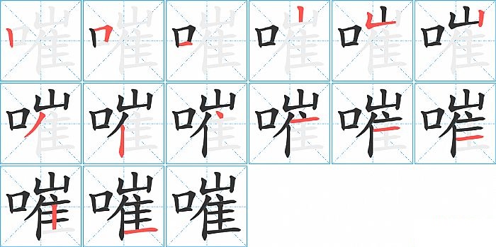 嗺是左右结构,嗺的部首是“口”,部外笔画11画,总笔画14画,嗺的笔画顺序是“竖、横折、横、竖、竖折/竖弯、竖、撇、竖、点、横、横、横、竖、横”。看看“嗺”字什么意思 >>