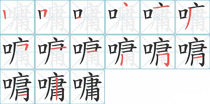 嘃是左右结构,嘃的部首是“口”,部外笔画11画,总笔画14画,嘃的笔画顺序是“竖、横折、横、点、横、撇、横折、横、横、竖、横折钩、横、横、竖”。看看“嘃”字什么意思 >>