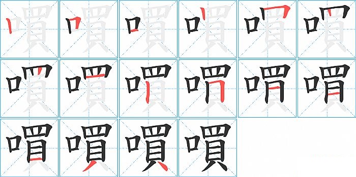 嘪是左右结构,嘪的部首是“口”,部外笔画12画,总笔画15画,嘪的笔画顺序是“竖、横折、横、竖、横折、竖、竖、横、竖、横折、横、横、横、撇、点”。看看“嘪”字什么意思 >>