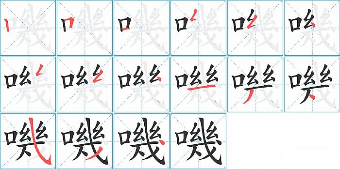嘰是左右结构,嘰的部首是“口”,部外笔画12画,总笔画15画,嘰的笔画顺序是“竖、横折、横、撇折、撇折、点、撇折、撇折、点、横、撇、点、斜钩、撇、点”。看看“嘰”字什么意思 >>