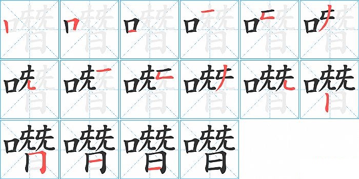 噆是左右结构,噆的部首是“口”,部外笔画12画,总笔画15画,噆的笔画顺序是“竖、横折、横、横、竖折/竖弯、撇、竖提、横、竖折/竖弯、撇、竖弯钩、竖、横折、横、横”。看看“噆”字什么意思 >>