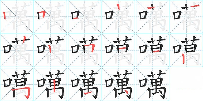 噧是左右结构,噧的部首是“口”,部外笔画12画,总笔画15画,噧的笔画顺序是“竖、横折、横、横、竖、竖、竖、横折、横、横、竖、横折钩、竖、提、点”。看看“噧”字什么意思 >>