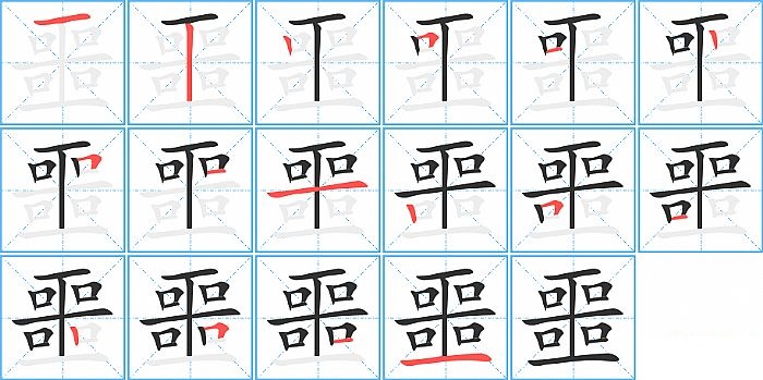 噩是单一结构,噩的部首是“口”,部外笔画13画,总笔画16画,噩的笔画顺序是“横、竖、竖、横折、横、竖、横折、横、横、竖、横折、横、竖、横折、横、横”。看看“噩”字什么意思 >>