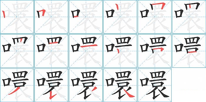 噮是左右结构,噮的部首是“口”,部外笔画13画,总笔画16画,噮的笔画顺序是“竖、横折、横、竖、横折、竖、竖、横、横、竖、横折、横、撇、竖提、撇、捺”。看看“噮”字什么意思 >>