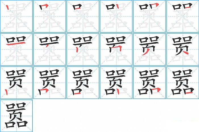 嚣是上中下结构,嚣的部首是“口”,部外笔画15画,总笔画18画,嚣的笔画顺序是“竖、横折、横、竖、横折、横、横、撇、竖、横折、撇、点、竖、横折、横、竖、横折、横”。看看“嚣”字什么意思 >>