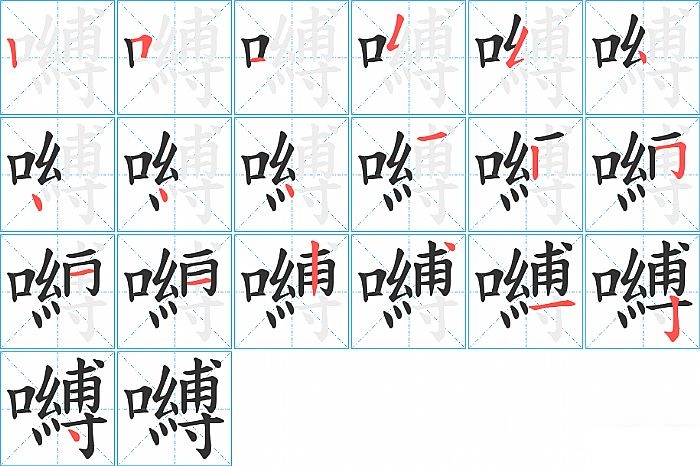 嚩是左右结构,嚩的部首是“口”,部外笔画16画,总笔画19画,嚩的笔画顺序是“竖、横折、横、撇折、撇折、点、点、点、点、横、竖、横折、横、横、竖、点、横、竖钩、点”。看看“嚩”字什么意思 >>