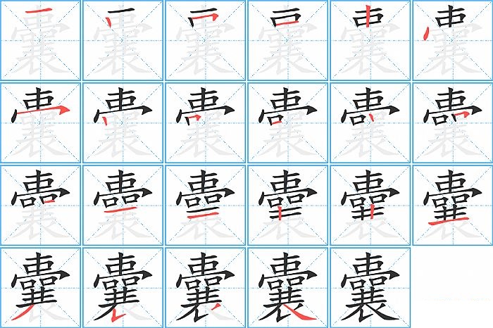囊是上下结构,囊的部首是“口”,部外笔画19画,总笔画22画,囊的笔画顺序是“横、竖、横折、横、竖、点、横撇/横钩、竖、横折、横、竖、横折、横、横、横、竖、竖、横、撇、竖提、撇、捺”。看看“囊”字什么意思 >>