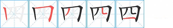 《四》字的笔顺分步演示图(一笔一画写汉字)