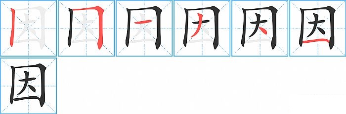 《因》字的笔顺分步演示图(一笔一画写汉字)