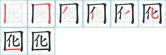 囮是全包围结构,囮的部首是“囗”,部外笔画4画,总笔画7画,囮的笔画顺序是“竖、横折、撇、竖、撇、竖弯钩、横”。