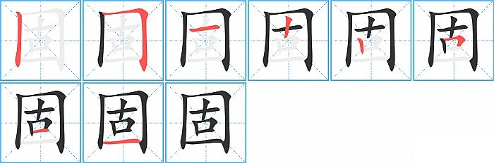 《固》字的笔顺分步演示图(一笔一画写汉字)