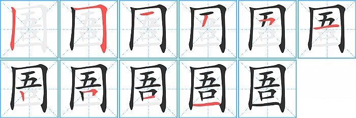 圄是全包围结构,圄的部首是“囗”,部外笔画7画,总笔画10画,圄的笔画顺序是“竖、横折、横、竖、横折、横、竖、横折、横、横”。看看“圄”字什么意思 >>