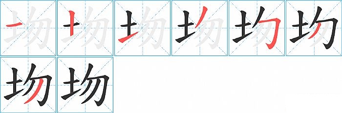 圽是左右结构,圽的部首是“土”,部外笔画4画,总笔画7画,圽的笔画顺序是“横、竖、提、撇、横折钩、撇、撇”。