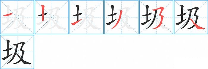 《圾》字的笔顺分步演示图(一笔一画写汉字)