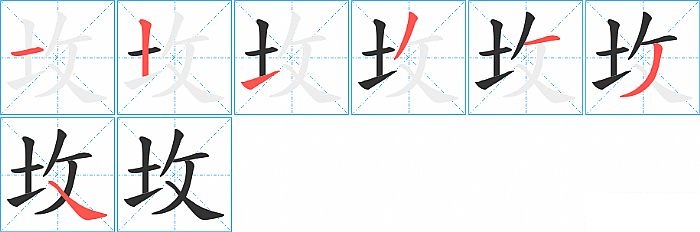 《坆》字的笔顺分步演示图(一笔一画写汉字)