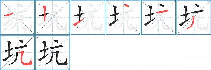 《坑》字的笔顺分步演示图(一笔一画写汉字)