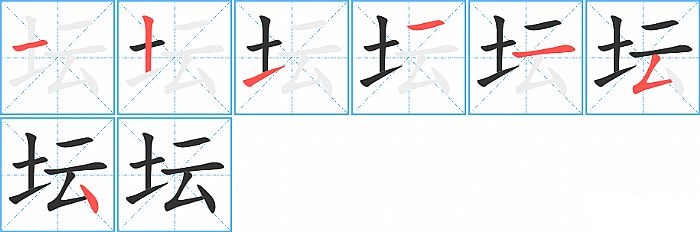 《坛》字的笔顺分步演示图(一笔一画写汉字)