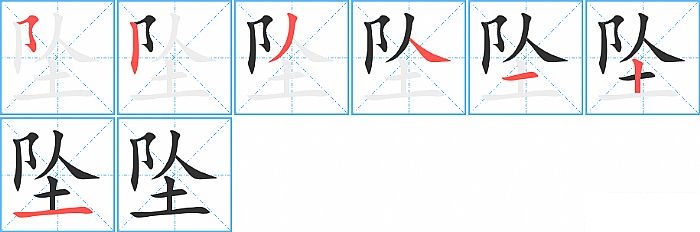 坠是上下结构,坠的部首是“土”,部外笔画4画,总笔画7画,坠的笔画顺序是“横折折折钩/横撇弯钩、竖、撇、捺、横、竖、横”。