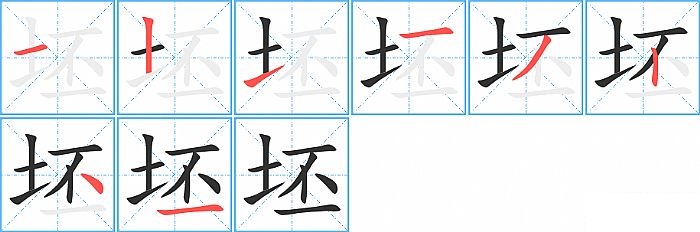 《坯》字的笔顺分步演示图(一笔一画写汉字)