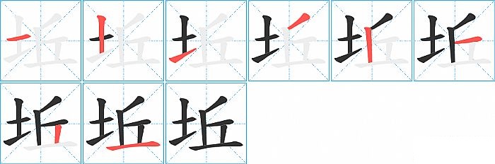 《坵》字的笔顺分步演示图(一笔一画写汉字)