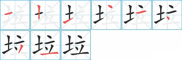 《垃》字的笔顺分步演示图(一笔一画写汉字)