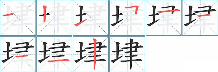《垏》字的笔顺分步演示图(一笔一画写汉字)