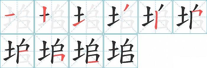 《垖》字的笔顺分步演示图(一笔一画写汉字)