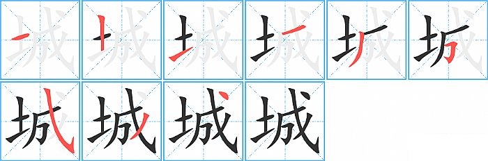 《城》字的笔顺分步演示图(一笔一画写汉字)