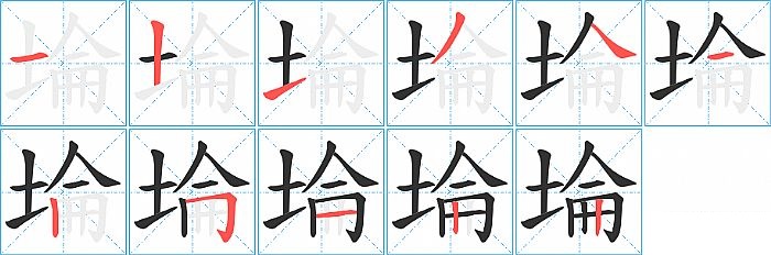 横、竖、提、撇、捺、横、竖、横折钩、横、竖、竖