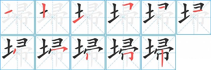 埽是左右结构,埽的部首是“土”,部外笔画8画,总笔画11画,埽的笔画顺序是“横、竖、提、横折、横、横、点、横撇/横钩、竖、横折钩、竖”。看看“埽”字什么意思 >>