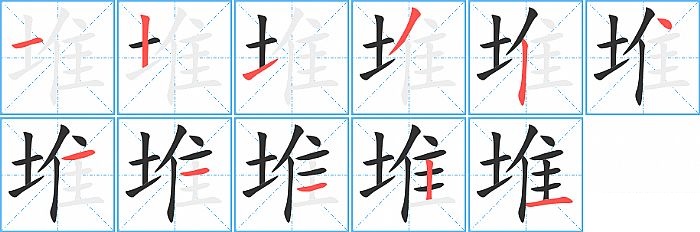 《堆》字的笔顺分步演示图(一笔一画写汉字)
