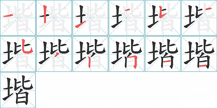 堦是左右结构,堦的部首是“土”,部外笔画9画,总笔画12画,堦的笔画顺序是“横、竖、提、横、竖提、撇、竖弯钩、撇、竖、横折、横、横”。看看“堦”字什么意思 >>