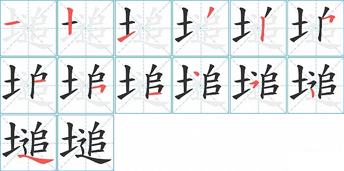 塠是左右结构,塠的部首是“土”,部外笔画9画,总笔画12画,塠的笔画顺序是“横、竖、提、撇、竖、横折、横、横折、横、点、横折折撇、捺”。看看“塠”字什么意思 >>
