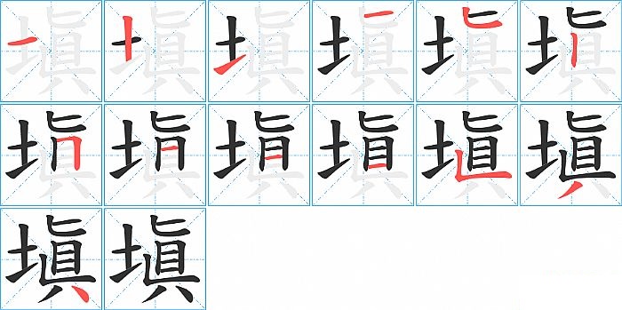 塡是左右结构,塡的部首是“土”,部外笔画10画,总笔画13画,塡的笔画顺序是“横、竖、提、撇、竖折/竖弯、竖、横折、横、横、横、竖折/竖弯、撇、点”。看看“塡”字什么意思 >>
