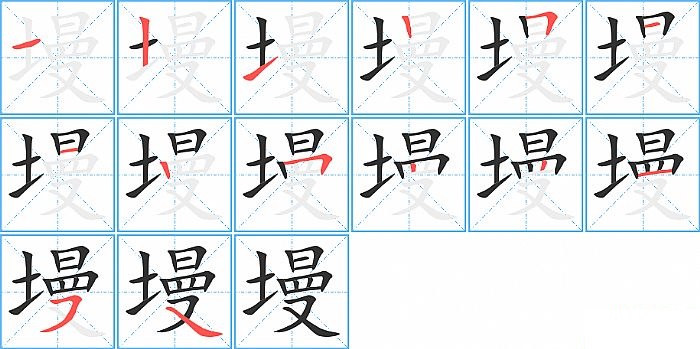 墁是左右结构,墁的部首是“土”,部外笔画11画,总笔画14画,墁的笔画顺序是“横、竖、提、竖、横折、横、横、竖、横折、竖、竖、横、横撇/横钩、捺”。看看“墁”字什么意思 >>