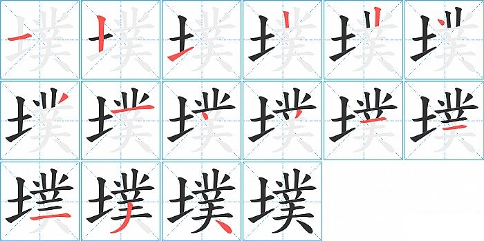 墣是左右结构,墣的部首是“土”,部外笔画12画,总笔画15画,墣的笔画顺序是“横、竖、提、竖、竖、点、撇、横、点、撇、横、横、横、撇、捺”。看看“墣”字什么意思 >>