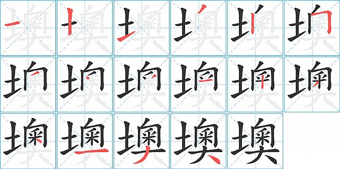 墺是左右结构,墺的部首是“土”,部外笔画12画,总笔画15画,墺的笔画顺序是“横、竖、提、撇、竖、横折、点、撇、横、竖、撇、点、横、撇、捺”。看看“墺”字什么意思 >>