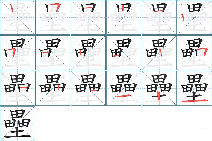 壘是上下结构,壘的部首是“土”,部外笔画15画,总笔画18画,壘的笔画顺序是“竖、横折、横、竖、横、竖、横折、横、竖、横、竖、横折、横、竖、横、横、竖、横”。看看“壘”字什么意思 >>
