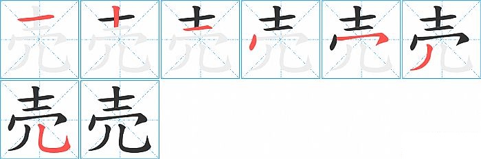 売是上下结构,売的部首是“士”,部外笔画4画,总笔画7画,売的笔画顺序是“横、竖、横、点、横撇/横钩、撇、竖弯钩”。
