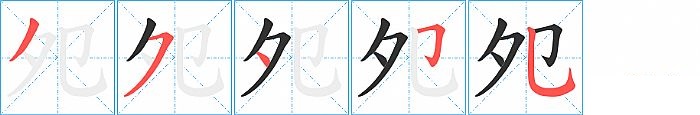 夗是左右结构,夗的部首是“夕”,部外笔画2画,总笔画5画,夗的笔画顺序是“撇、横撇/横钩、点、横折钩、竖弯钩”。