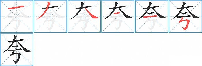 《夸》字的笔顺分步演示图(一笔一画写汉字)