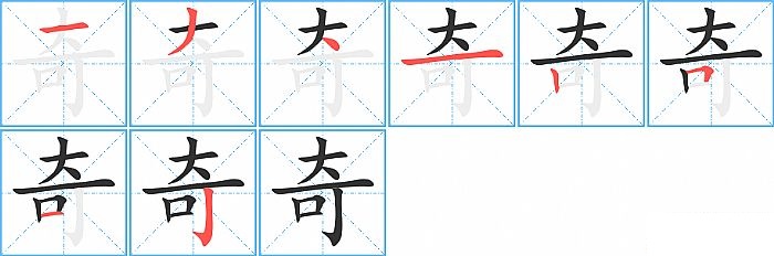 《奇》字的笔顺分步演示图(一笔一画写汉字)