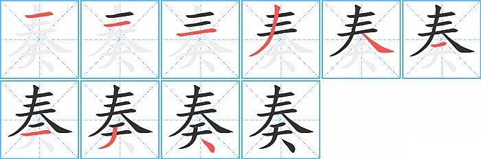 《奏》字的笔顺分步演示图(一笔一画写汉字)