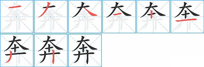 《奔》字的笔顺分步演示图(一笔一画写汉字)