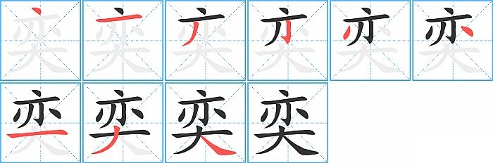 《奕》字的笔顺分步演示图(一笔一画写汉字)