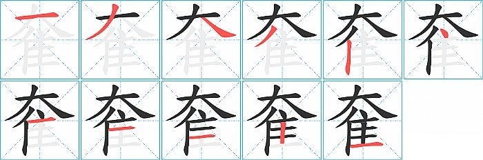 《奞》字的笔顺分步演示图(一笔一画写汉字)