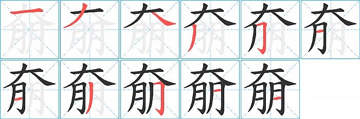 奟是上下结构,奟的部首是“大”,部外笔画8画,总笔画11画,奟的笔画顺序是“横、撇、捺、撇、横折钩、横、横、撇、横折钩、横、横”。看看“奟”字什么意思 >>