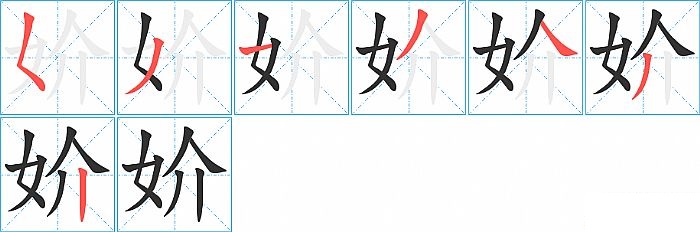 《妎》字的笔顺分步演示图(一笔一画写汉字)