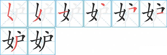 《妒》字的笔顺分步演示图(一笔一画写汉字)